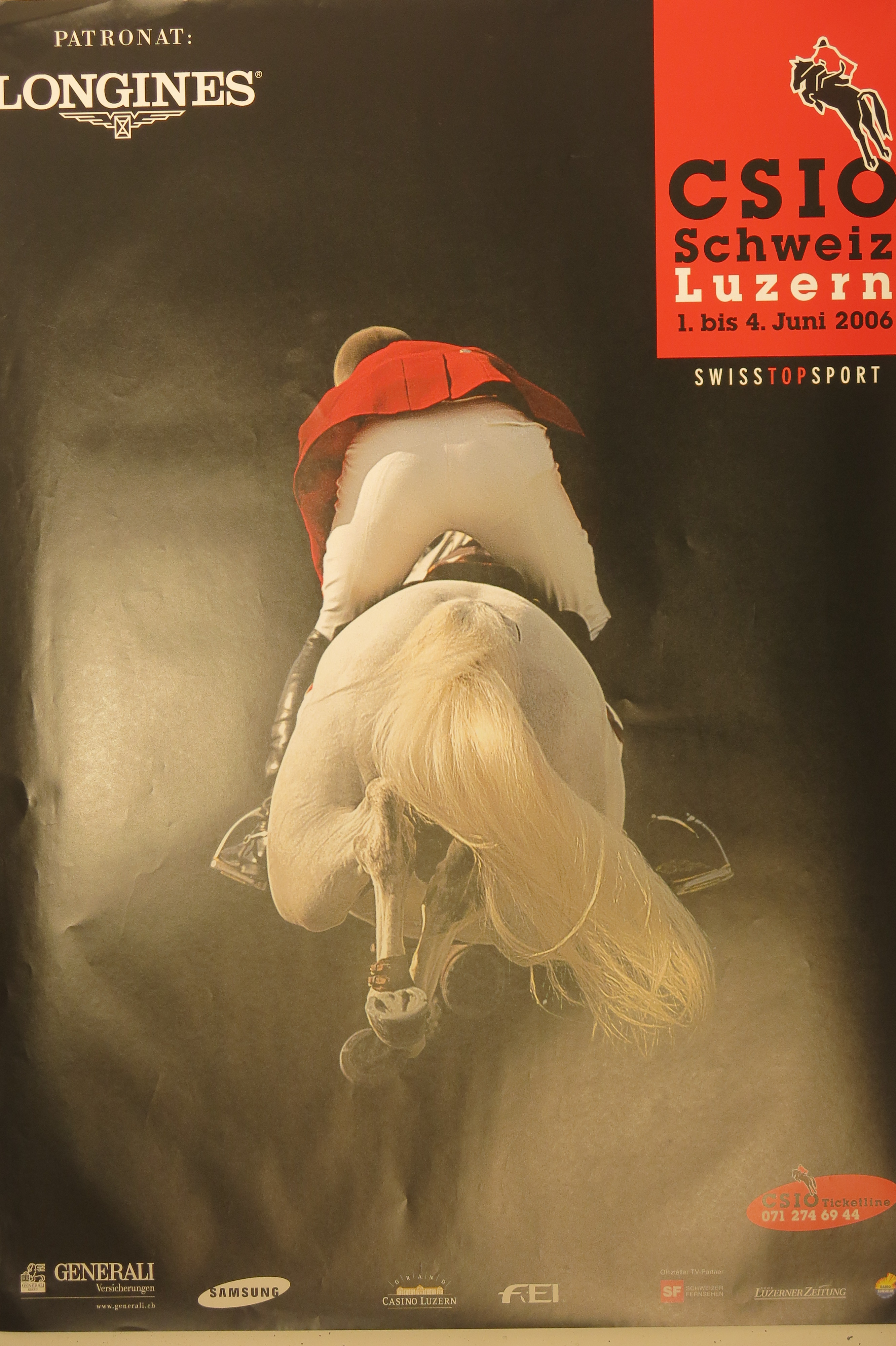 Den Organisatoren des CSIO St Gallen, CSI Genf, CSI Ascona, CSI Basel, CSI Zürich, CSI Chevenez gelingt es immer wieder tolle werbewirksame Plakate zu kreieren und sie setzen diesen Werbeträger immer wieder für ihre Turniere ein.